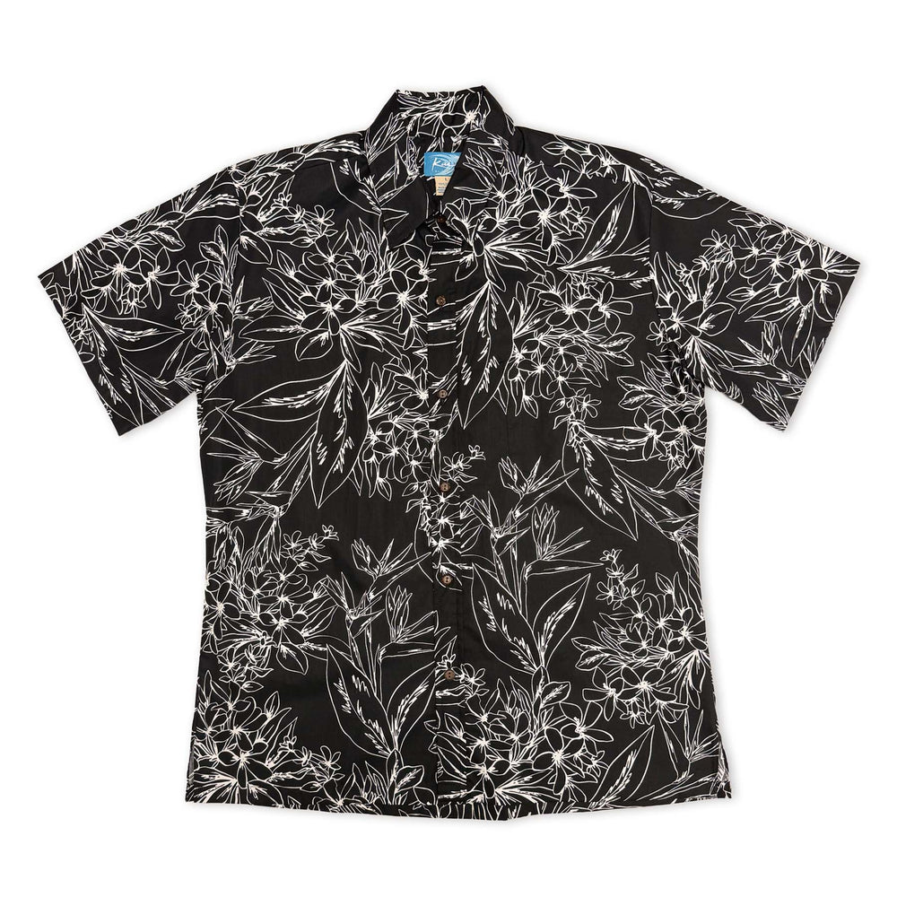 Bird of Paradise Orchid Black Men's Aloha Shirt