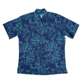 Bird of Paradise Orchid Navy Men's Aloha Shirt