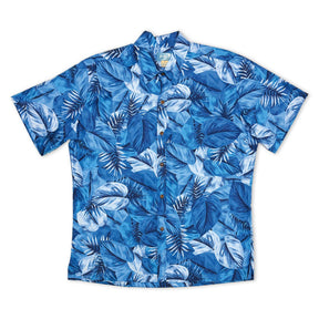 Tropical Leaves Blue Men's Aloha Shirt - S is backordered and will ship as soon as it is back in stock.