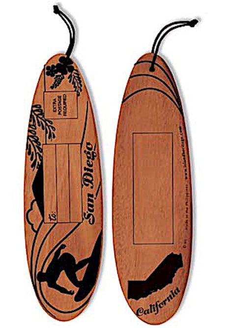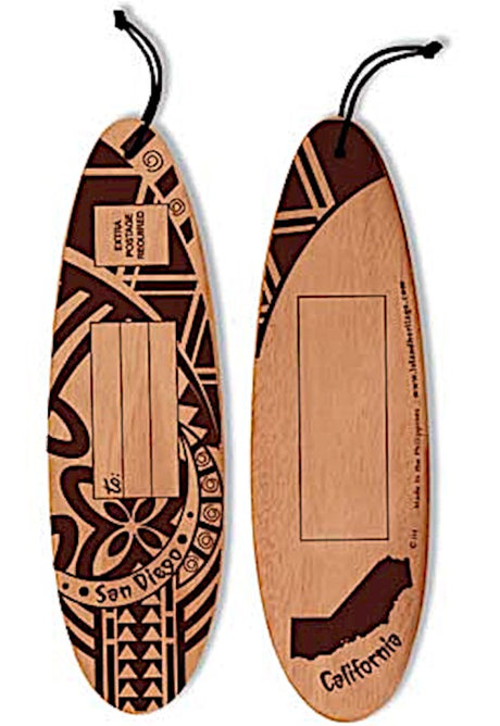 Tapa Brown San Diego Wooden Surfboard Post Card