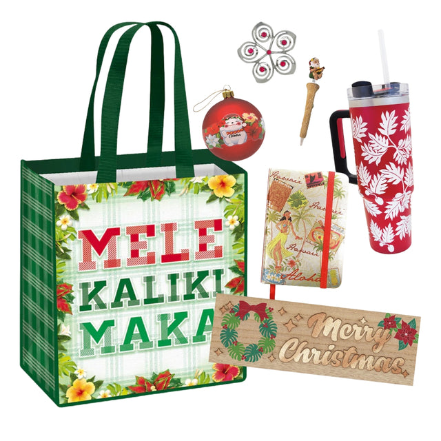 Apportez la magie des îles à vos fêtes de fin d'année avec le coffret cadeau de Noël hawaïen ! Cette collection soigneusement composée allie l'esprit festif au charme tropical, créant un cadeau idéal pour tous ceux qui apprécient une touche hawaïenne dans la décoration traditionnelle des fêtes. Que ce soit pour partager l'aloha avec vos proches ou pour vous faire plaisir, ce coffret apportera une douce magie insulaire à la saison.