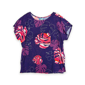 Monstera Waves II Plum Women's Boatneck Blouse